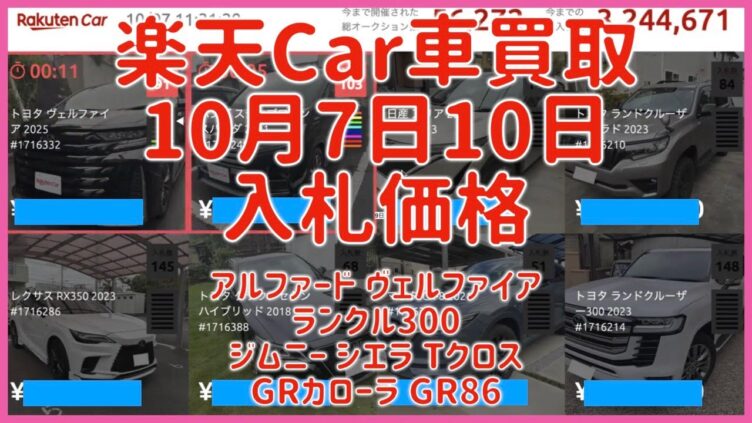 楽天Car車買取 10月7日10日 2025 アルファード ヴェルファイア ランクル300 ジムニー シエラ Tクロス GRカローラ GR86